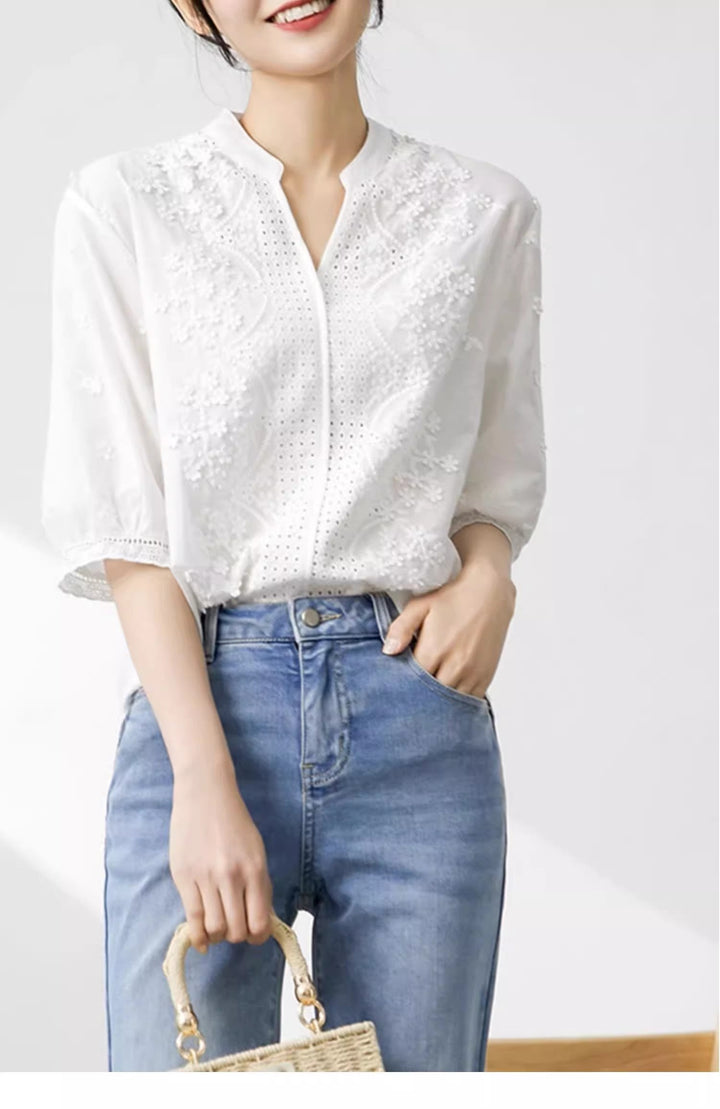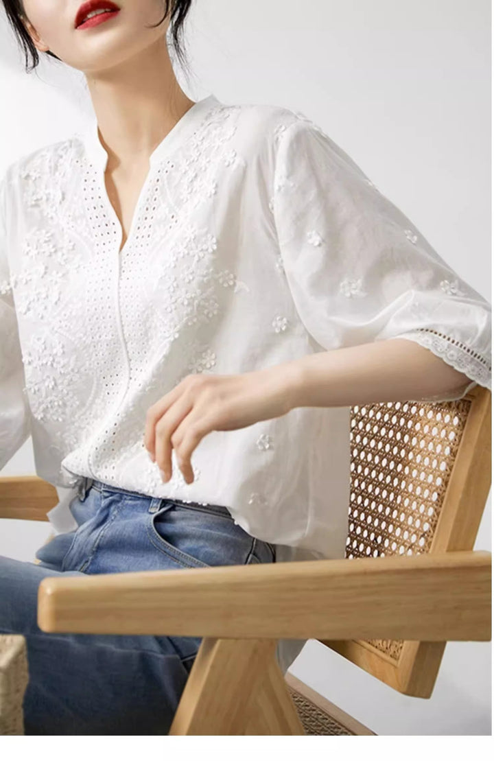 Alexa Embroidered Jacquard Lace Shirt