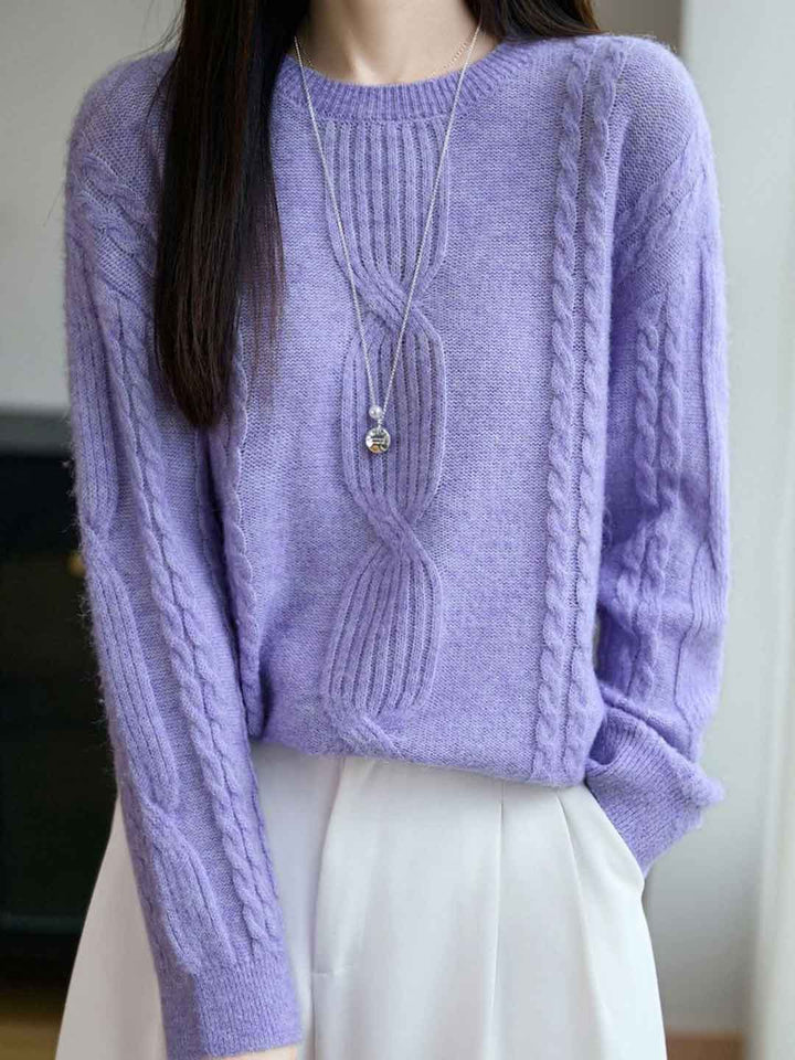 Ariana Casual Crew Neck Cable Knitted Pullover Sweater-White