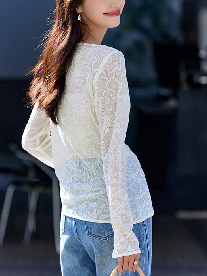 Arianna Casual Crew Neck Asymmetrical Jacquard Top