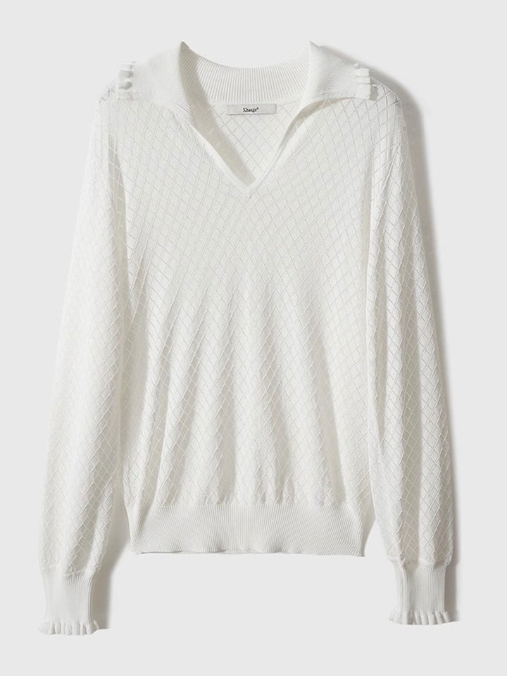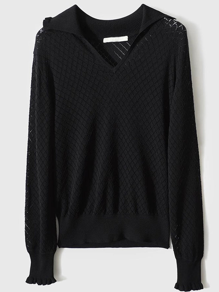 Ashley Classic V-Neck Hollow Solid Color Knitted Top