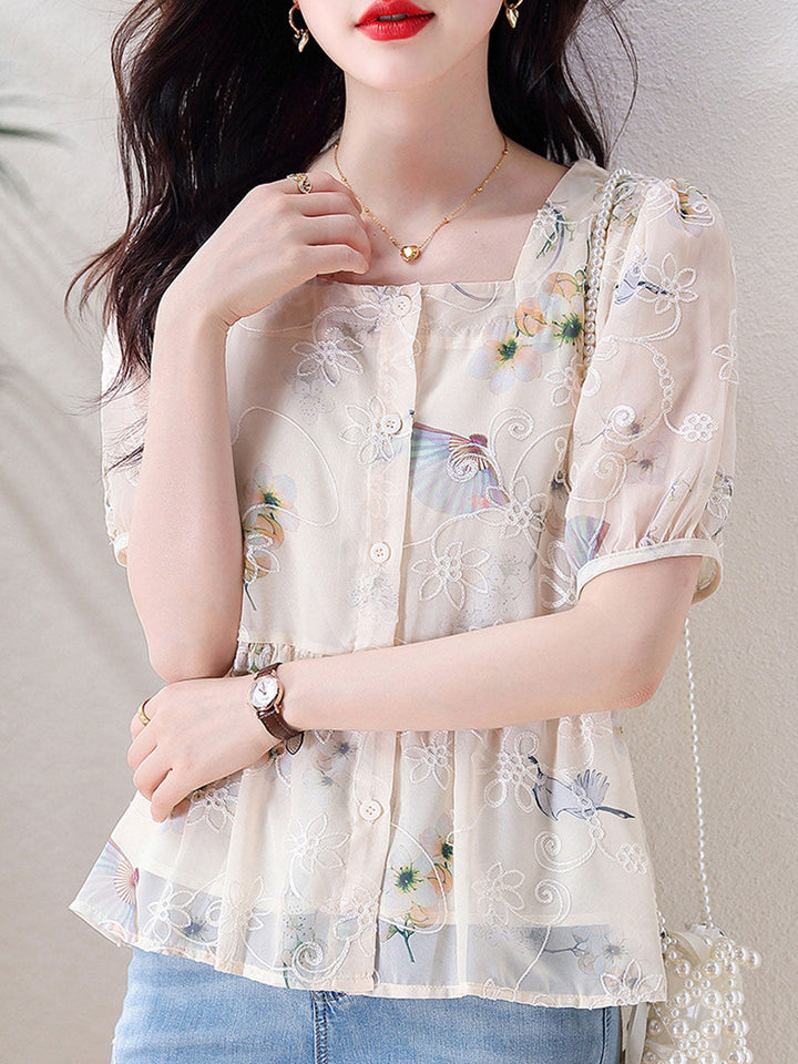 Kaitlyn Loose Puff Sleeve Printed Chiffon Blouse