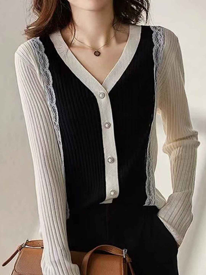 Charlotte Slim V-Neck Lace Knitted Cardigan