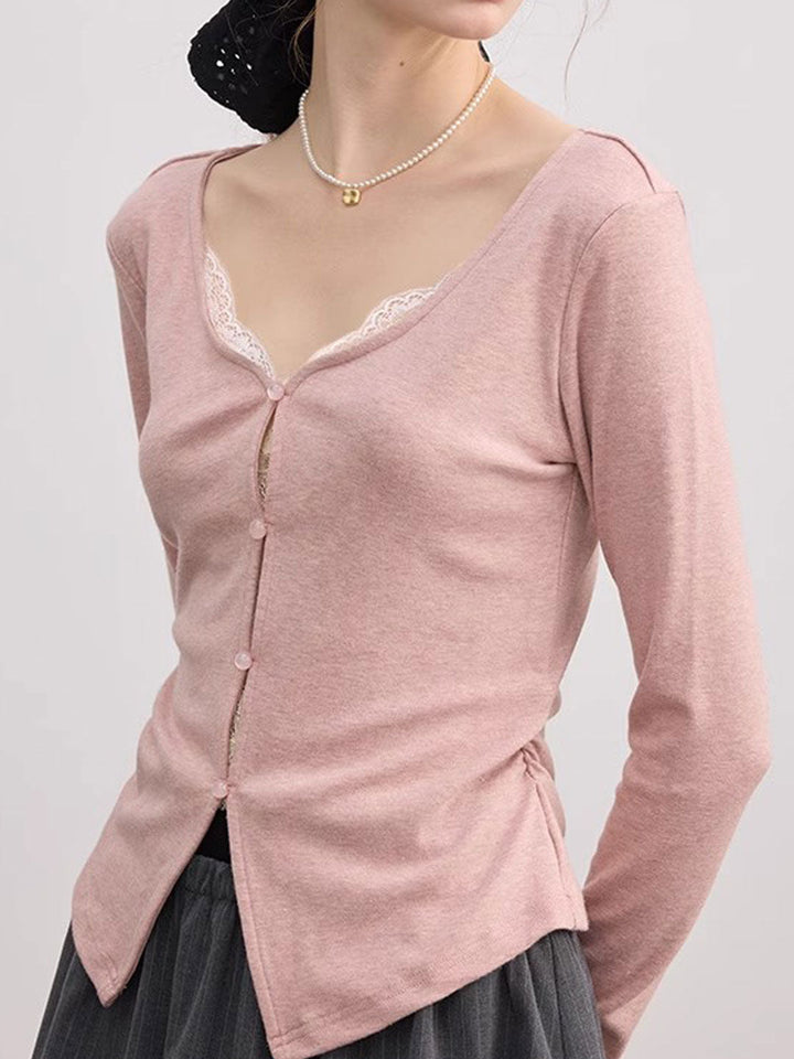 Chloe Slim V-Neck Solid Color Lace Top