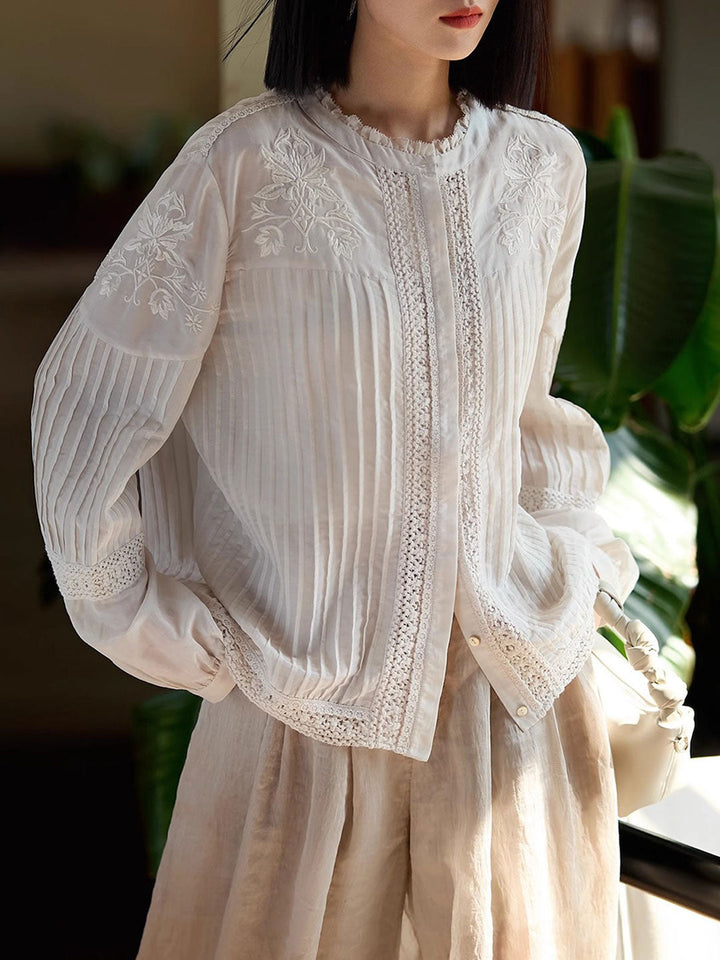 Claire Loose Auricular Puff Sleeve Embroidered Blouse