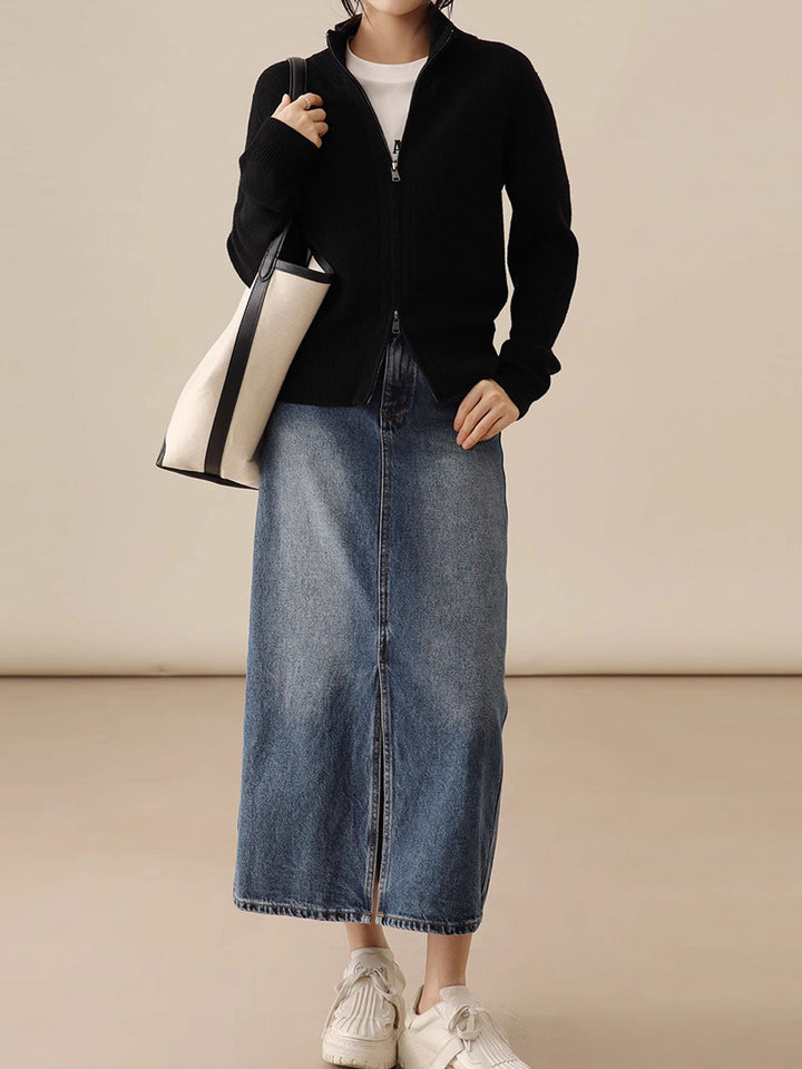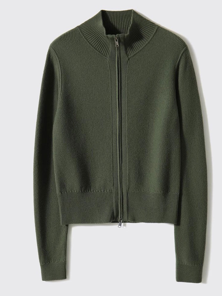 Emily Loose Zipper Solid Color Knitted Cardigan