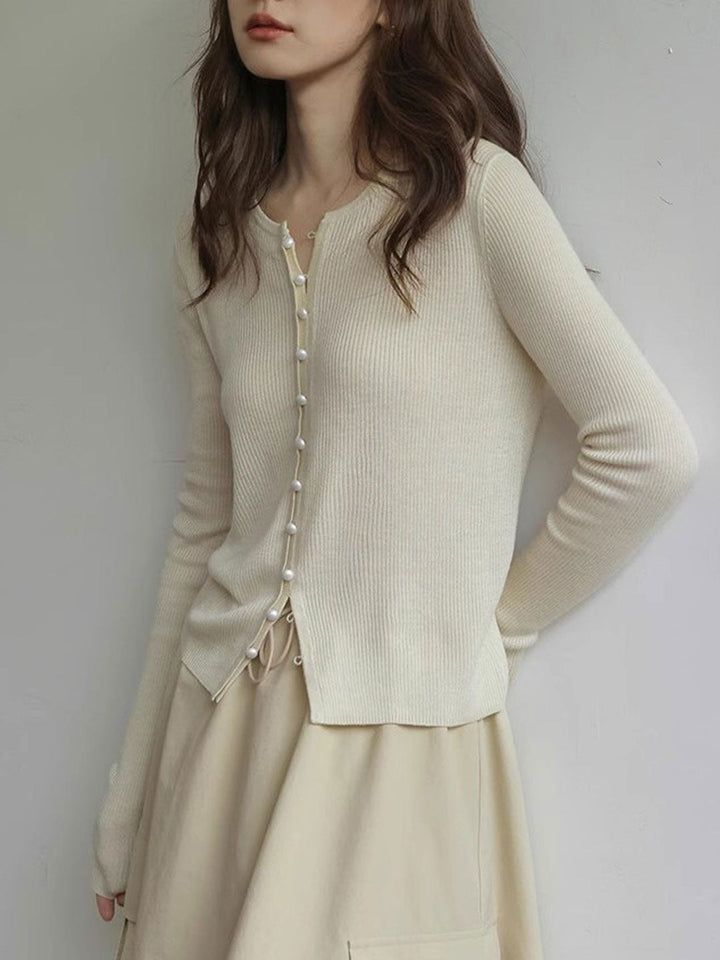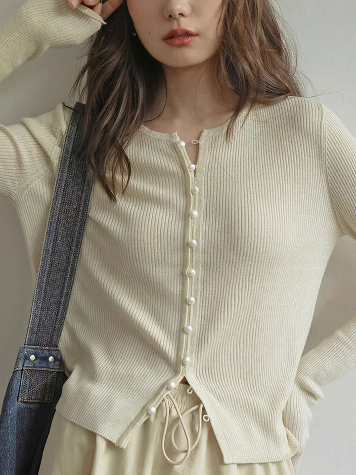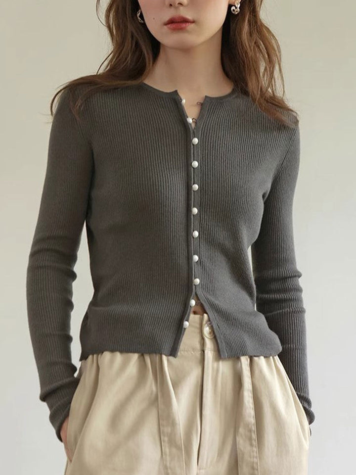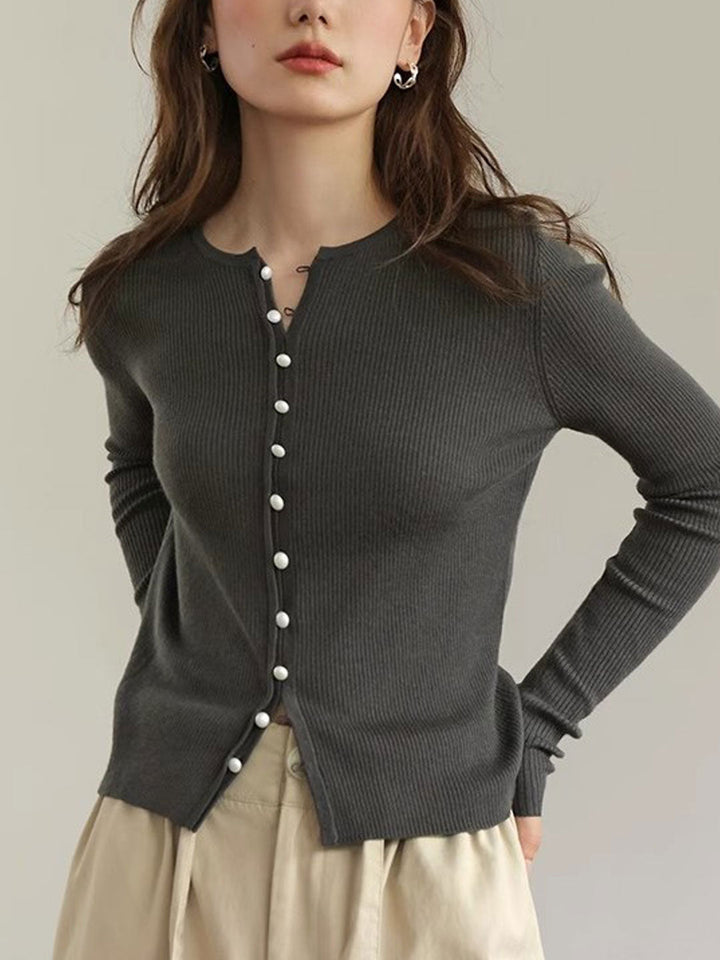 Emma Classic Crew Neck Solid Color Knitted Cardigan