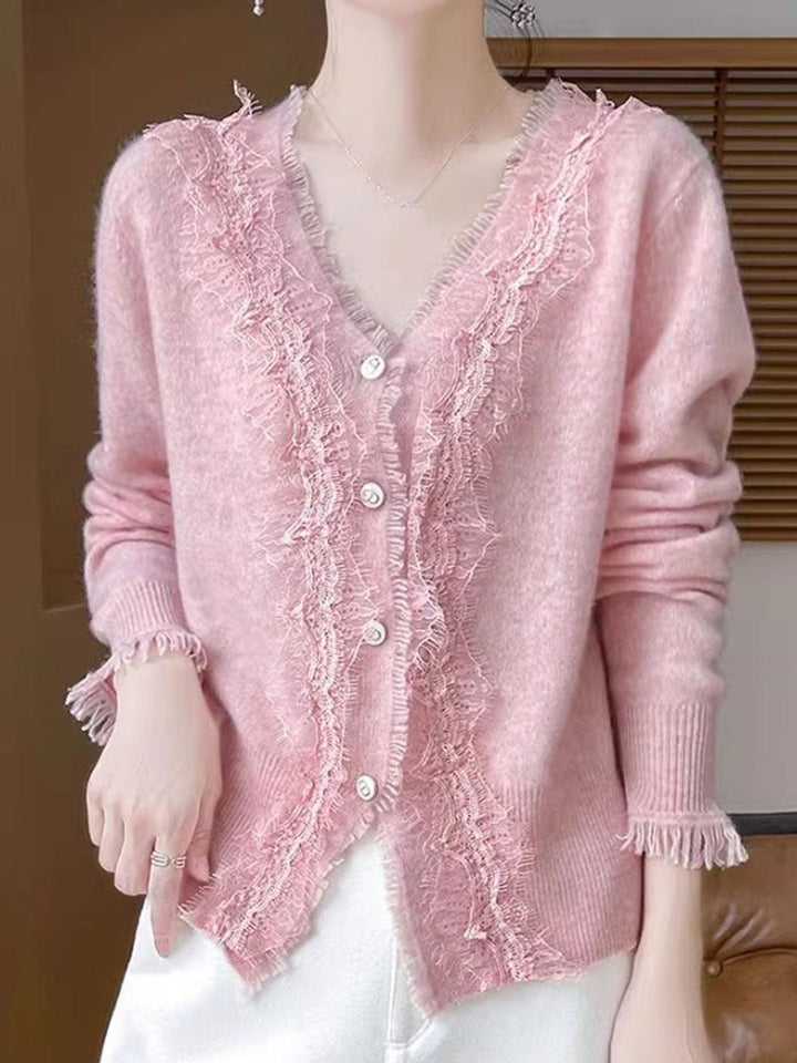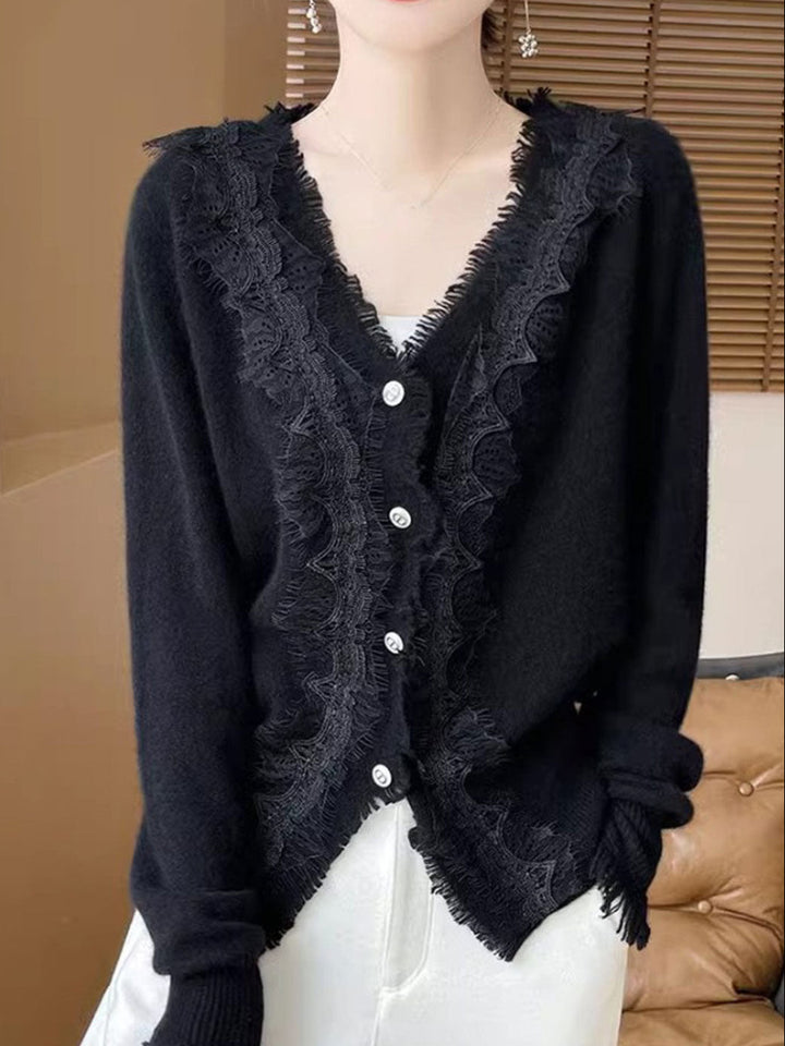 Emma Elegant V-Neck Lace Knitted Cardigan