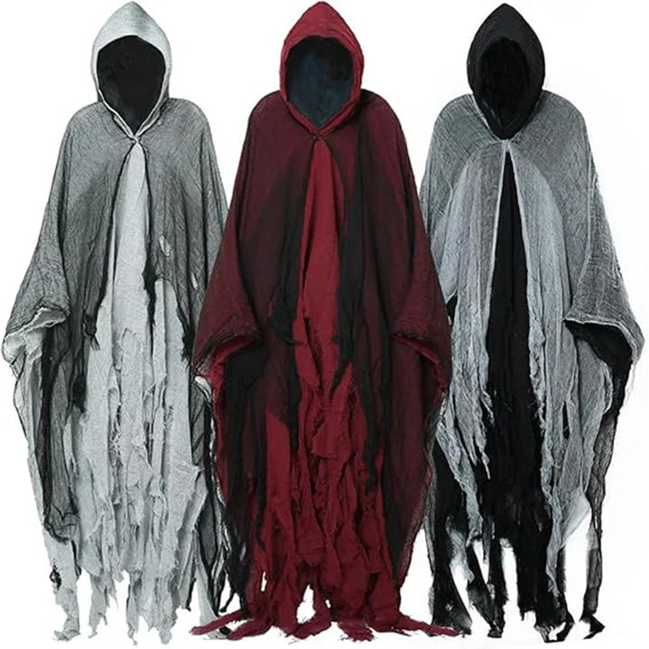 Add an air of mystery and darkness to your look with this Halloween gothic hooded cape. Its long design with tattered fabrics and an aged effect creates a terrifying style perfect for costume parties, cosplay, or Día de los Muertos. Comfortable and lightweight, it easily fits into any wardrobe for an immediate impact.