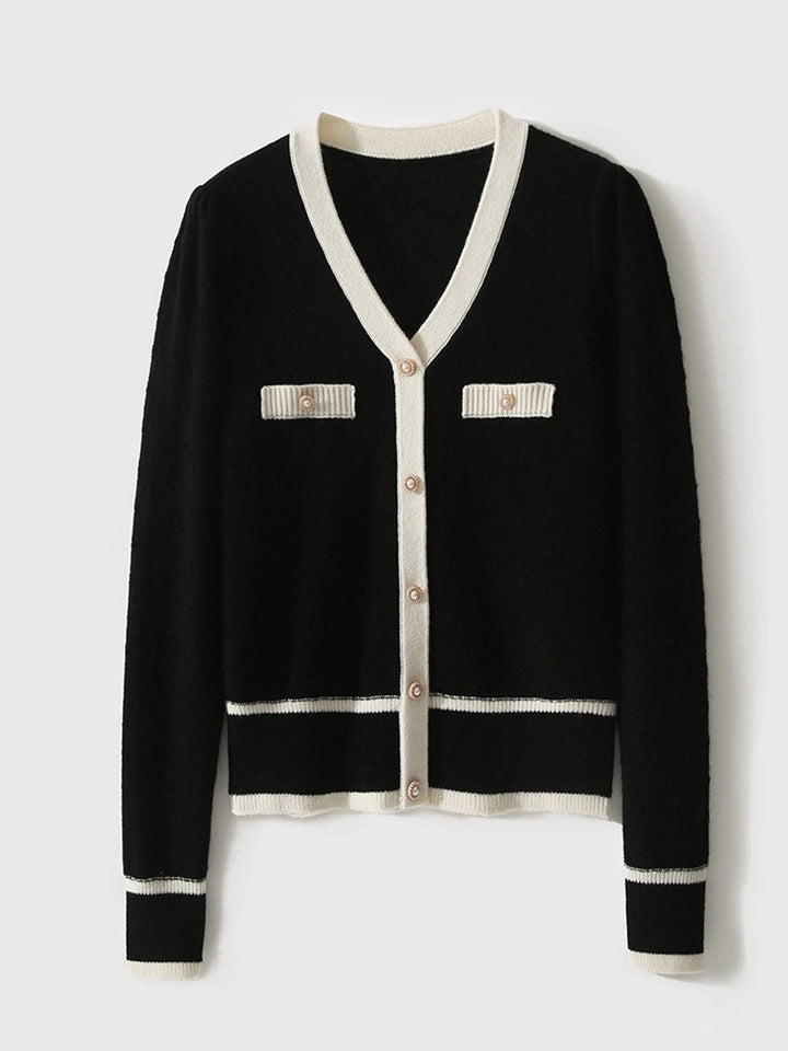 Hannah Casual V-Neck Textured Jacquard Knitted Sweater