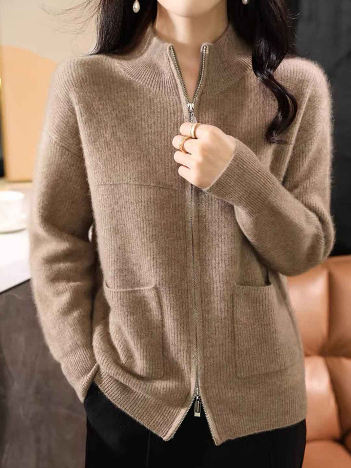 Hannah Loose Turtleneck Zippered Knitted Cardigan
