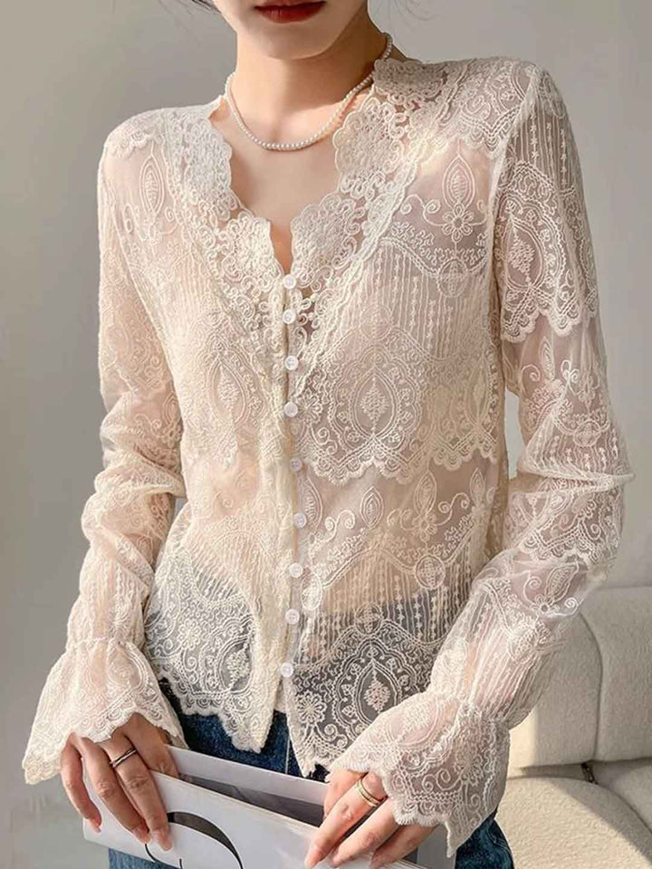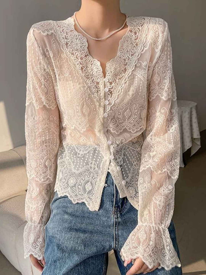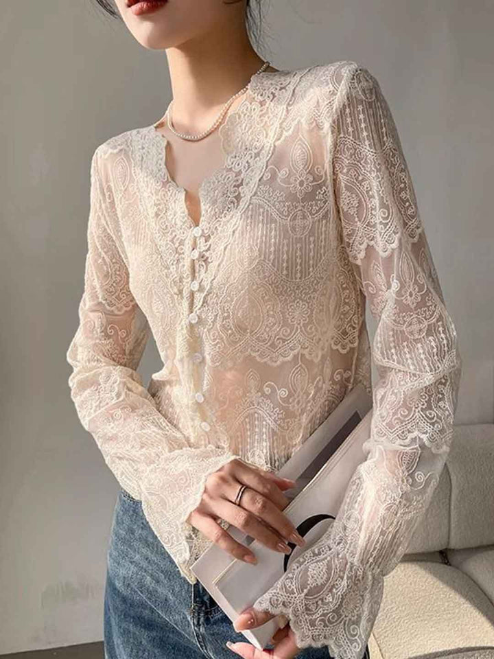 Hannah Slim V-Neck Hollowed Lace Top