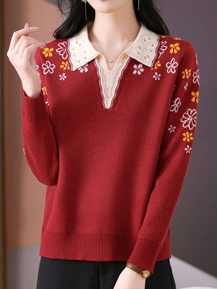 Jocelyn Casual Lapel Embroidered Knitted Top