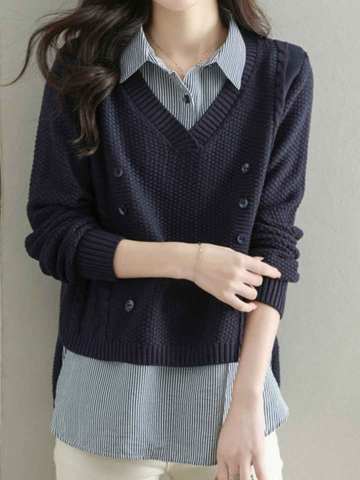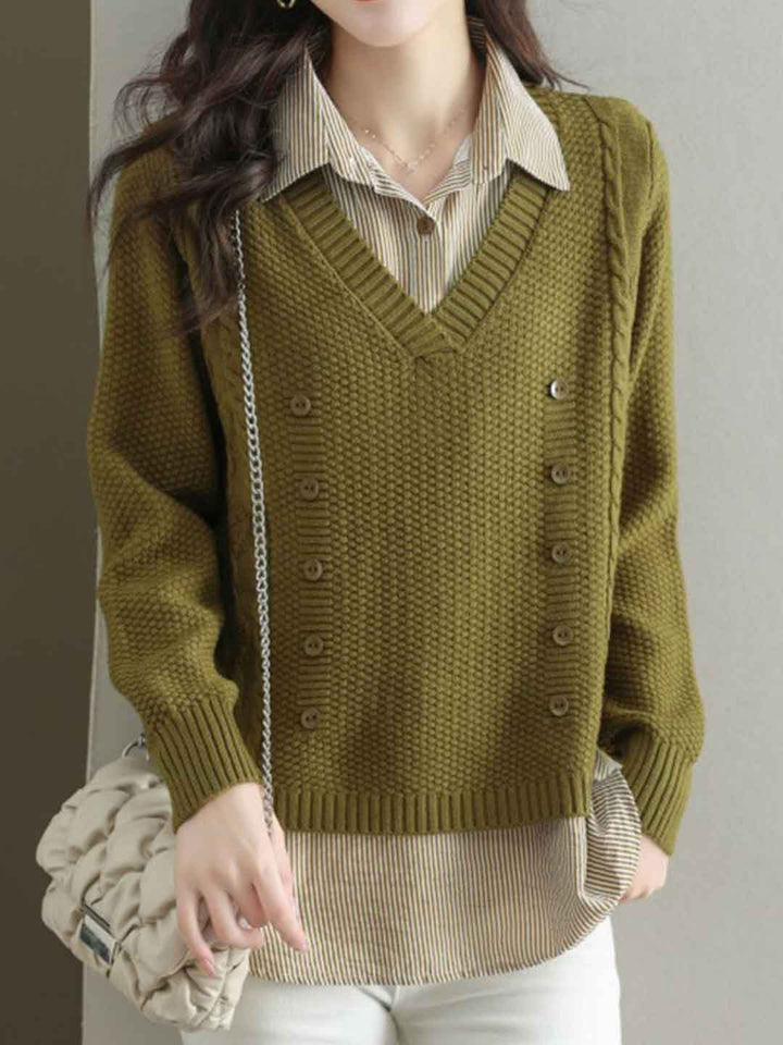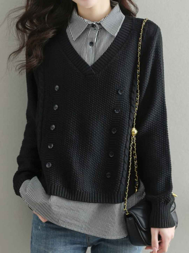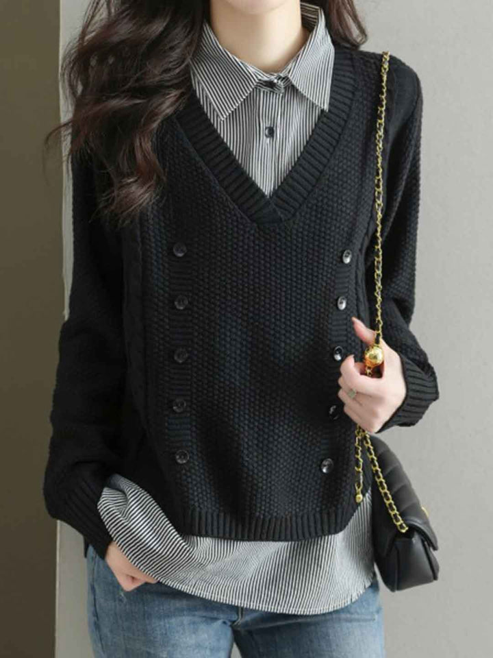 Jocelyn Loose Mock Two-Piece Striped Knitted Top