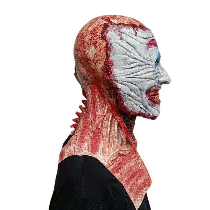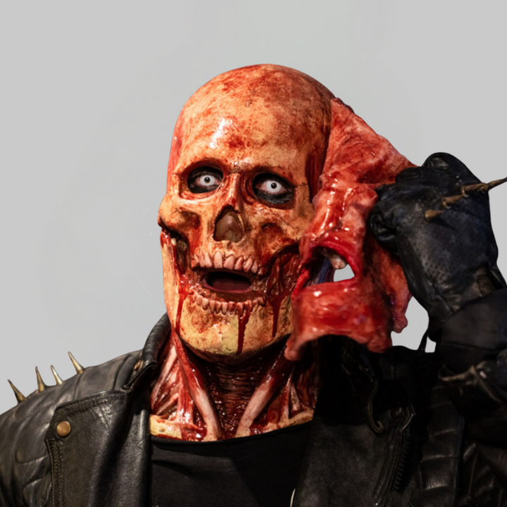 Enhance the realism of your costume this Halloween with the skull Joker mask, crafted from high-quality latex with striking details. Its double layer and movable mouth create a creepy and authentic effect, while the design that covers the neck and part of the chest adds a much more realistic finish. Ideal for cosplay, horror parties, and Halloween props, it is the ultimate piece for those looking to make an impression.