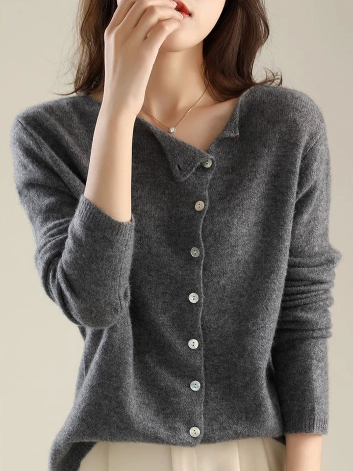 Kayla Classic Crew Neck Knitted Cardigan-Gray