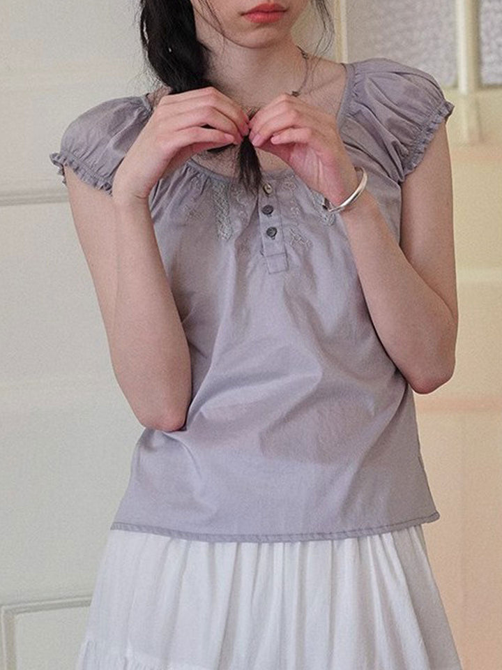Kylie Retro Crew Neck Embroidered Lace Top