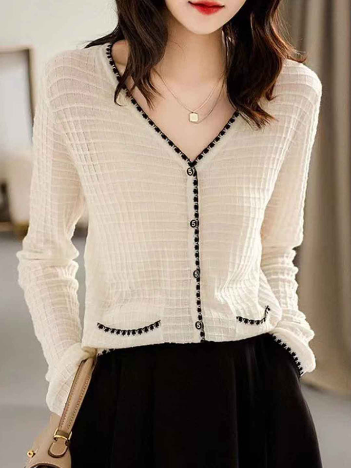 Mariah Classic V-Neck Contrasted Color Knitted Cardigan