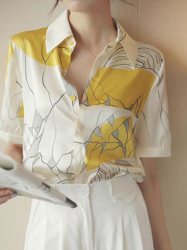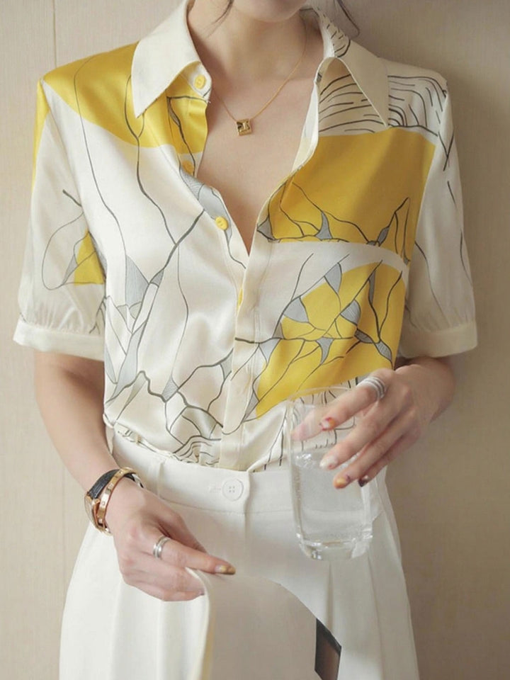 Maya Daily Polo Collar Contrast Printed Shirt