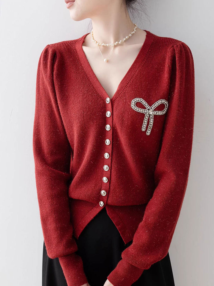 Natalie Elegant V-Neck Diamond-Studded Knitted Top