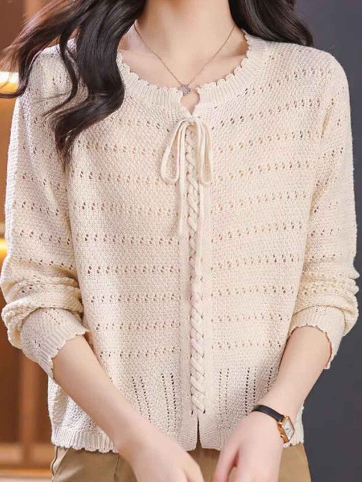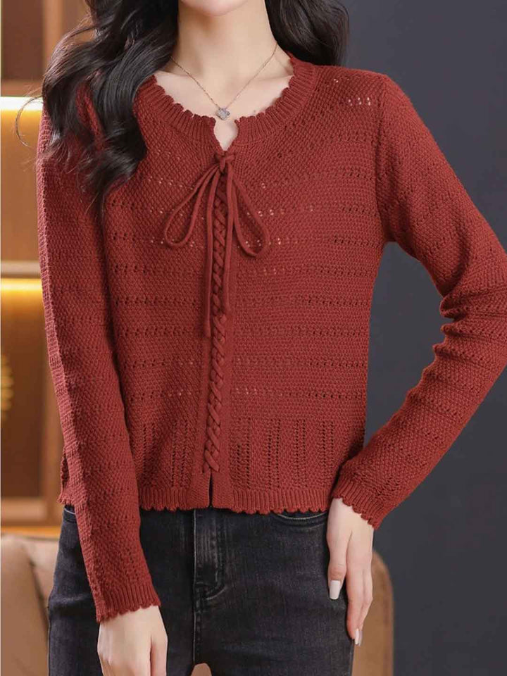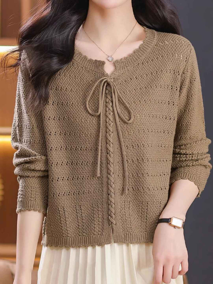 Riley Loose Crew Neck Tie Solid Color Knitted Top