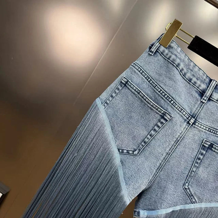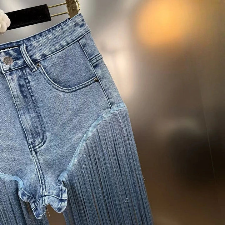 SHORT FLARED JEANS WITH FRINGES SUMMER 2025 (SLIMMING EFFECT)