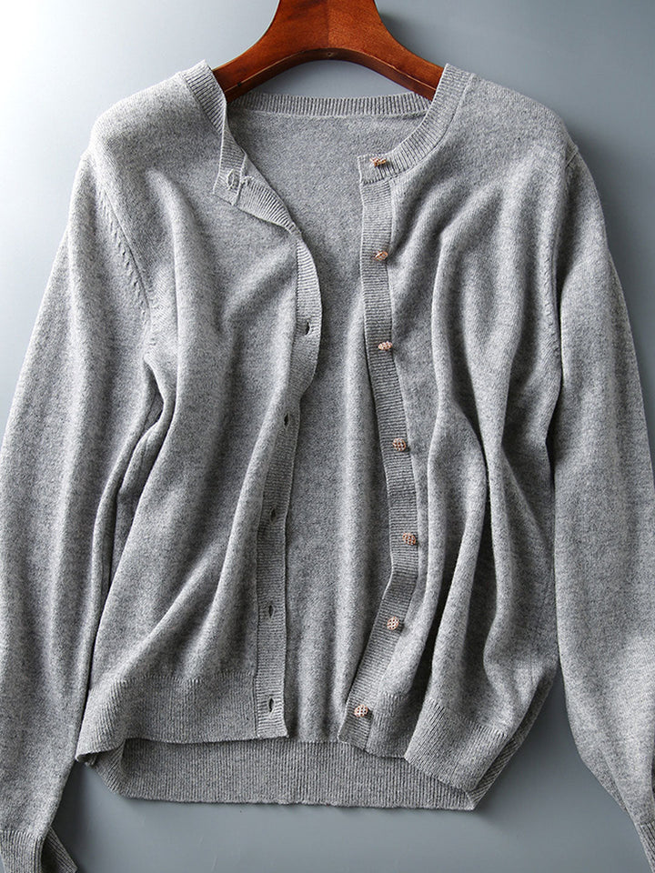 Sophia Classic Crew Neck Solid Color Knitted Cardigan-Royal Blue